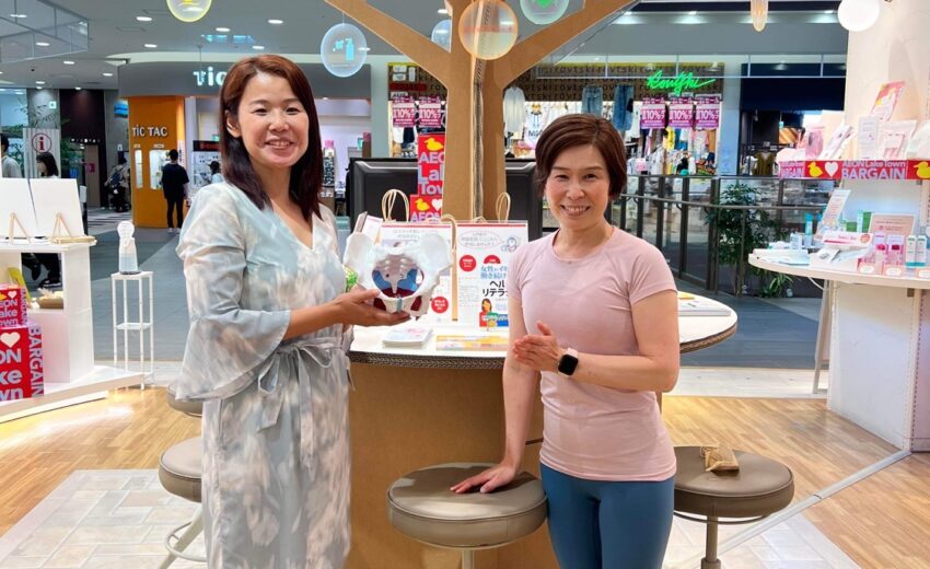 越谷レイクタウンのイオンモール内に半年間限定で開設されているフェムテックショップbyeASUで骨盤底筋の体験トレーニングを開催しました。当日は素敵な店内で計2回、10名弱の方に参加していただいてトレーニングしてきましたよ。年代は20代~60代(推定)。娘さんとお母様でご参加いただいた方もいらっしゃいました。ちなみに底トレの紹介ブースはこんな感じでした。きれいに展示いただきありがとうございます。