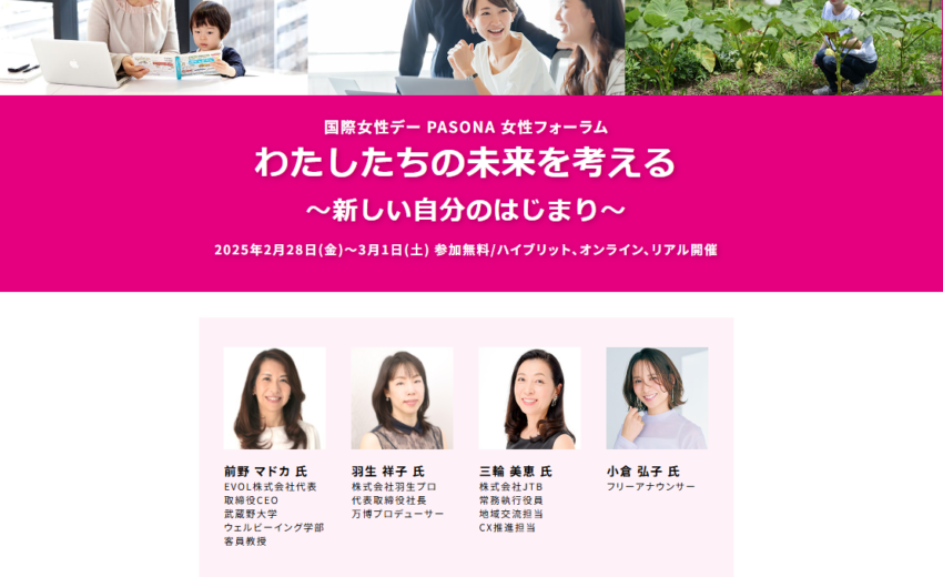 ▶PASONA女性フォーラム わたしたちの未来を考える~新しい自分のはじまり~についてはこちら