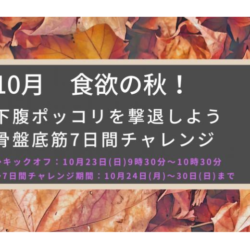 10月食欲の秋到来!!気になる「下腹ぽっこり」を撃退しよう!骨盤底筋7日間チャレンジ
