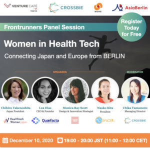 2020年12月10日にWomen in Health Tech ~Connecting Japan & Europe from BERLIN~へ代表の北がオンラインで登壇し、ヨーロッパと日本がつながるイベントでお話させていただきました。当日は日本から2名、海外から3名の女性起業家やWomen’s Healthの領域で活躍する女性が登壇し、自分の活動や、Women’s Healthに対する想いを語り、意見交換しました。オンラインでの参加者からも多くのコメントが寄せられ、興味深い時間となりました。日本の生理用ナプキンを不透明な袋にいれるところ、低用量ピルの普及率の低さなどが話題にあがりました。