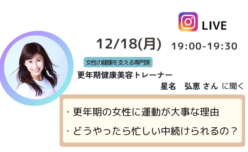 今回は星名先生に『更年期と運動』のテーマでお話しいただきました。